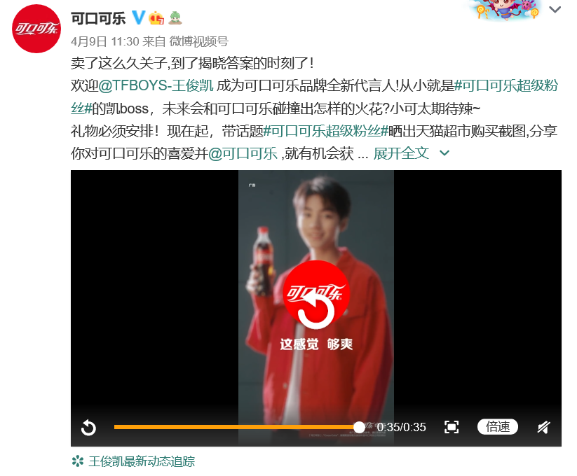 作為明星經(jīng)紀(jì)公司認(rèn)為,可口可樂品牌真的是很有眼光了,選的代言人國民度較高且青春洋溢,和品牌形象很契合,讓人看了就想買。